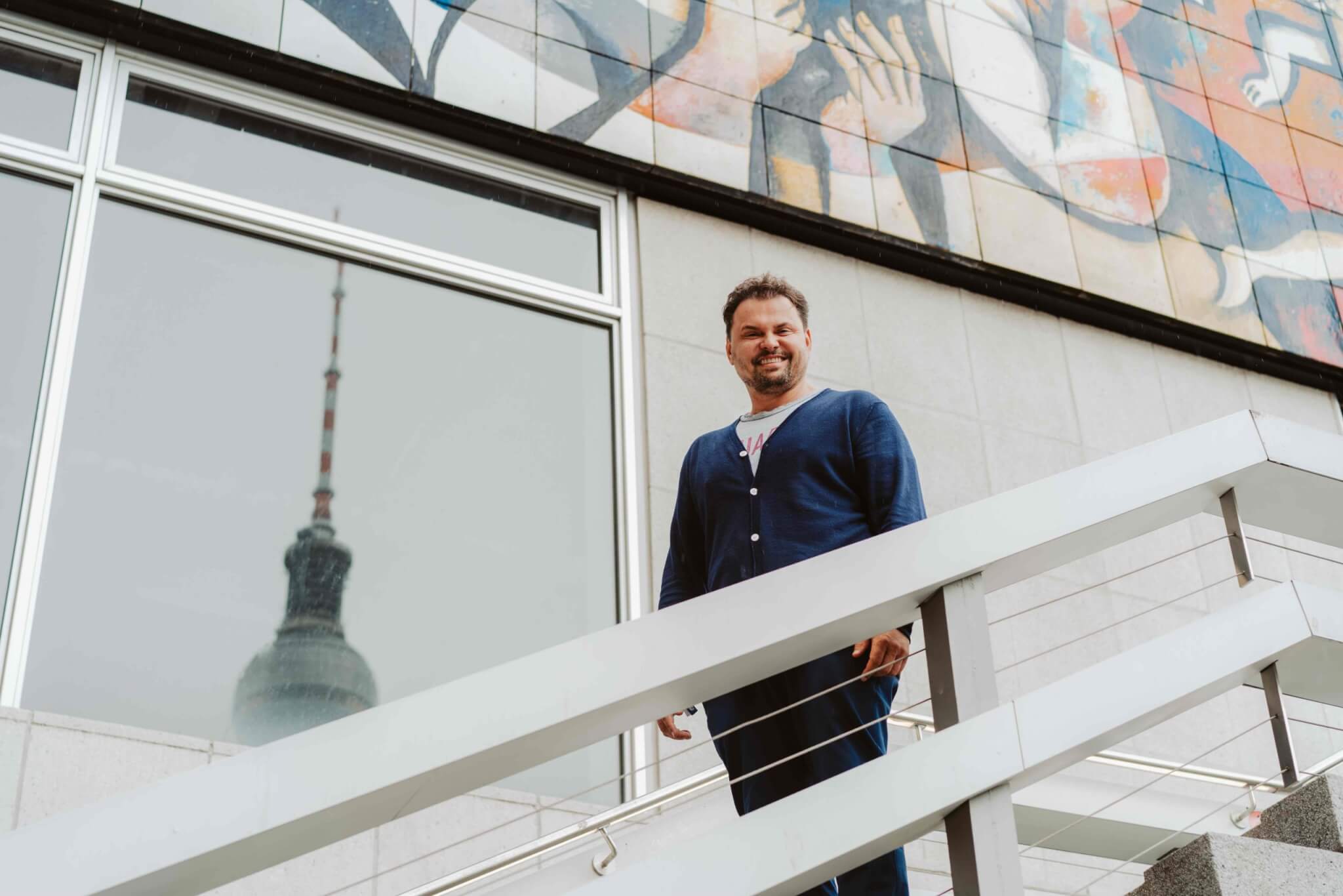 Alexander Freund stammt gebürtig aus Ost-Berlin. „Mir ist es wichtig, dass es auch im Ostteil der Stadt weitergeht“, erklärt er. Das Pressecafé bot Medienvertreter*innen in der DDR ab 1973 einen Blick in den westlichen Teil der Welt und war selbst hochmodern: mit Nachbauten des legendären Z-Stuhls von Ernst Moeckl, einem modernen Atelier und Fotolabor sowie zahlreichen Publikationen aus verschiedenen Ländern, die zur Einsicht auslagen. Nach der Wende residierte das Escados Steakhaus in der Konferenzetage des Pressecafés im ersten Stock.