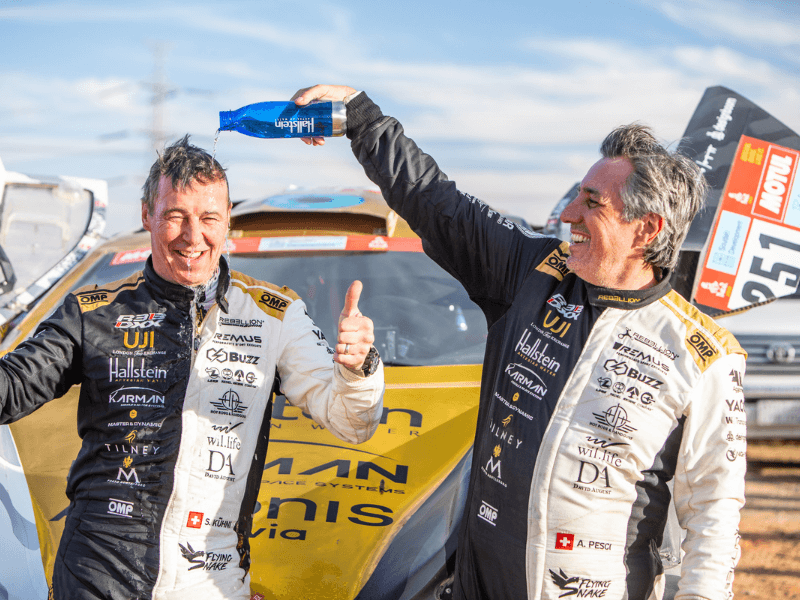 Die Schweizer Rennfahrer Alexandre Pesci und Dr. Stephan Kühni treten für das Rebellion-Team bei der 45. Rallye Dakar, um über 8000 schweißtreibende Kilometer durch die saudische Wüste zu bewältigen. Darum werden sie auf das neue Jahr höchstens mit einem Glas Wasser anstoßen und vor und während der Etappen viele weitere Liter trinken.