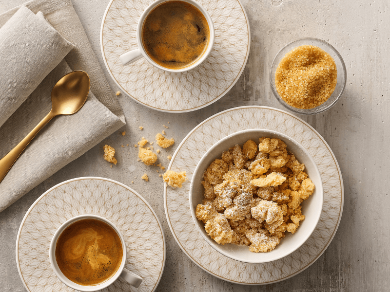 Eine glatte dekorierte Oberfläche neben einer Oberfläche im cremeweißen Naturton von Noble China, die eine reliefierte Oberfläche hat: Werden Artikel aus der Kollektion Delight mit dem Dekor Soul mit Artikeln aus der Kollektion Vibes kombiniert, entsteht eine optisch wie haptisch spannende Inszenierung.