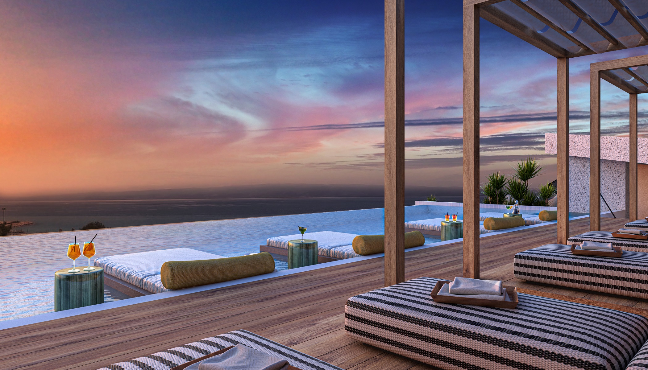 Für die Gestaltung der Dachterrasse hat sich das Mövenpick Split mit dem international bekannten und preisgekrönten Team Kristina Zanic Designs aus Dubai zusammengetan. Kristina Zanic und ihr Team haben einen stilvollen Ort geschaffen, an dem sich Gäste den ganzen Tag aufhalten und gesunde mediterrane Küche genießen können. Inspiriert vom dalmatischen Sonnenuntergang, entstand unter Verwendung kräftiger Farben, die sich an den Farbtönen der kroatischen Küste orientieren, eine Restaurant-Bar, die in der Region ihresgleichen sucht und das Potenzial hat, sich in den kommenden Jahren zum „place to be“ in Split zu entwickeln.