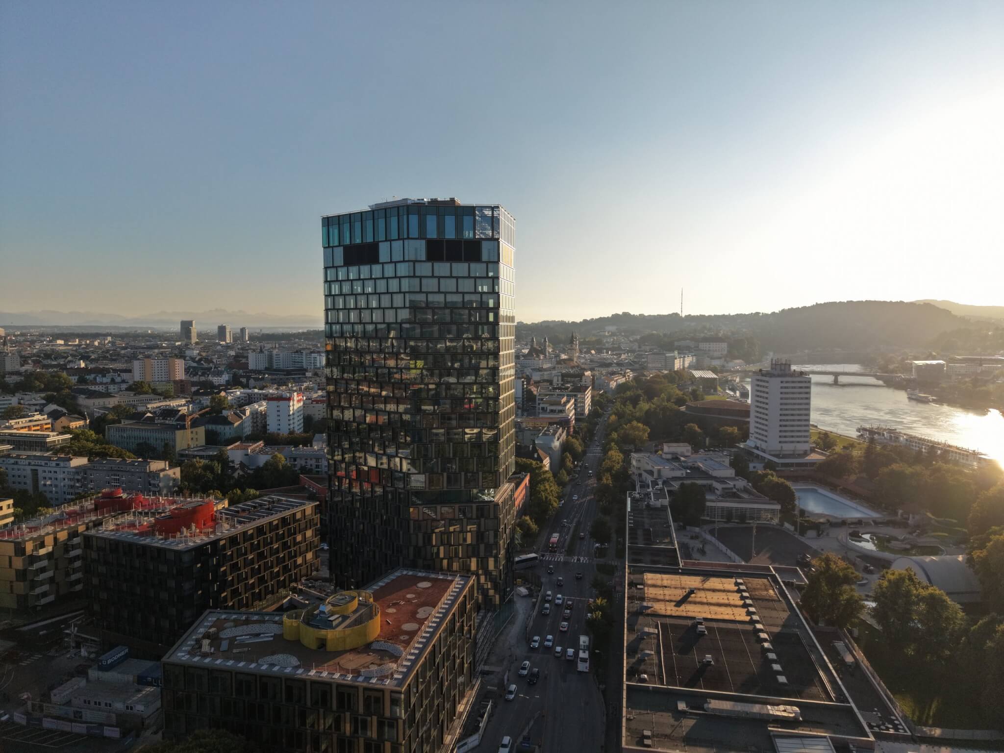 mit 360-Grad-Blick über Stadt und Donau. Mediterrane Küche, österreichische Klassiker und