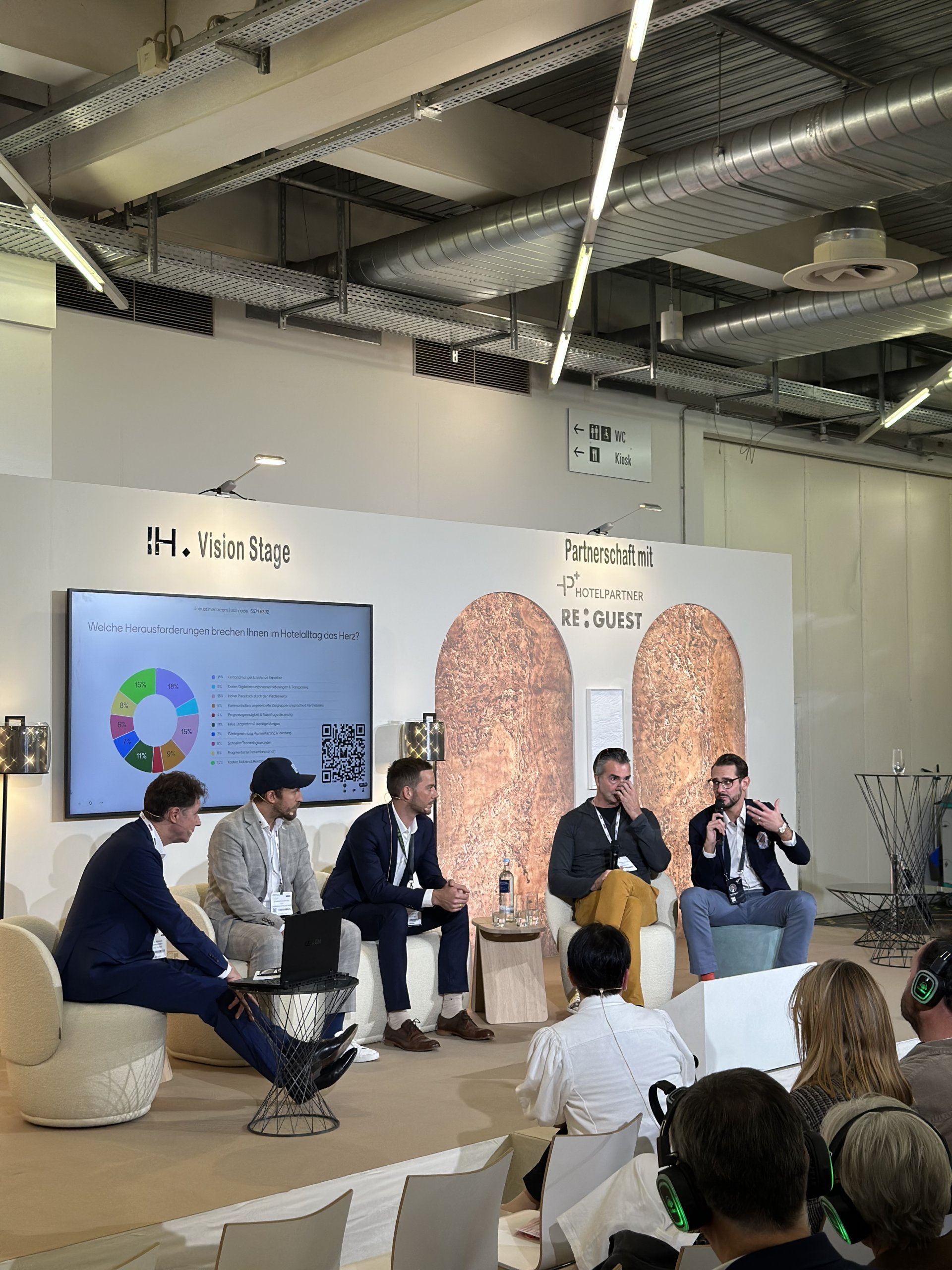 In einem von Kostensteigerungen, Margendruck und digitaler Transformation geprägten Marktumfeld setzten die Diskutierenden klare Akzente. Florian Augustin von HotelPartner, Johannes Ehrhart von CASABLANCA, Rico Müller von incert eTourismus und Michael Mitterhofer von ReGuest beleuchteten auf der Hotel Vision Stage im Event Center Messe München die entscheidenden Stellhebel für mehr Rentabilität, Effizienz sowie Entlastung der Mitarbeitenden. Eine einleitende Marktanalyse von Denise Seeholzer, die für die CoStar Group/STR tätig ist, zeichnete ein realistisches Bild der aktuellen Performance-Zahlen der DACH-Region und lieferte damit die Grundlage für eine lebhafte, praxisorientierte Diskussion.